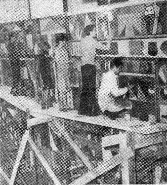 El equipo de artistas que componen el ‘Taller de Montevideo’, los que actualmente realizan una muestra de sus obras en el “Jockey Club”, se hallan en estos momentos dando termino a un gran mural en la Galería de La Casa Caubarrére. Este trabajo de rígida línea constructivista depurado en su estructura, y llevados sus signos naturales a una disciplina de composición, dan una pauta de las condiciones de estos jóvenes, cuya labor se verifica a través de etapas, el la cuales el color magnifica la geométrica factura del contenido plástico. Son los autores de la obra mural, los pintores: Clara Scremini, Armando Bergallo, Gorki Bollar y Hector Vilche.
